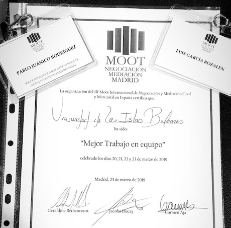 He sido seleccionado para formar parte del equipo de competición que representará a la Universidad de las Islas Baleares en la prestigiosa competición internacional MOOT y que se celebrará en Madrid durante el mes de abril.