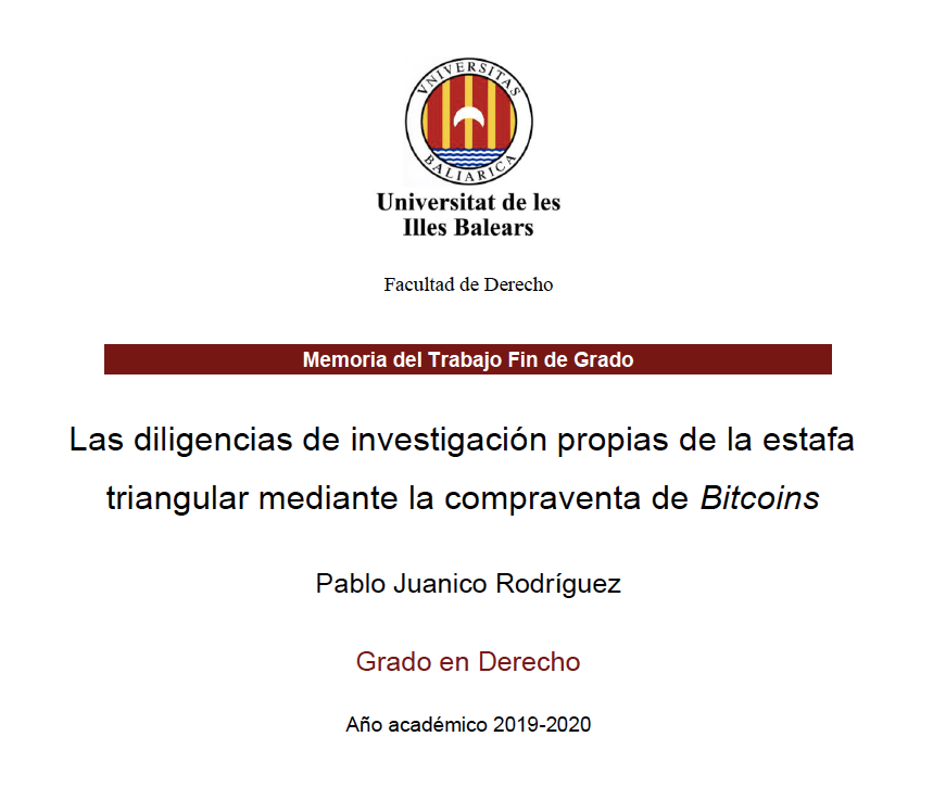 Aprovechando el lapso estival inicio la preparación del Trabajo de Fin de Grado que versará sobre la «Fase de instrucción en el delito triangular de compraventa de Bitcoins».